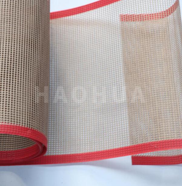 (PTFE)特氟龍網(wǎng)帶應(yīng)用范圍:(凡需要熱風(fēng)流場合及熱加工傳送條件,均適合使用鐵氟龍網(wǎng)格輸送帶。)