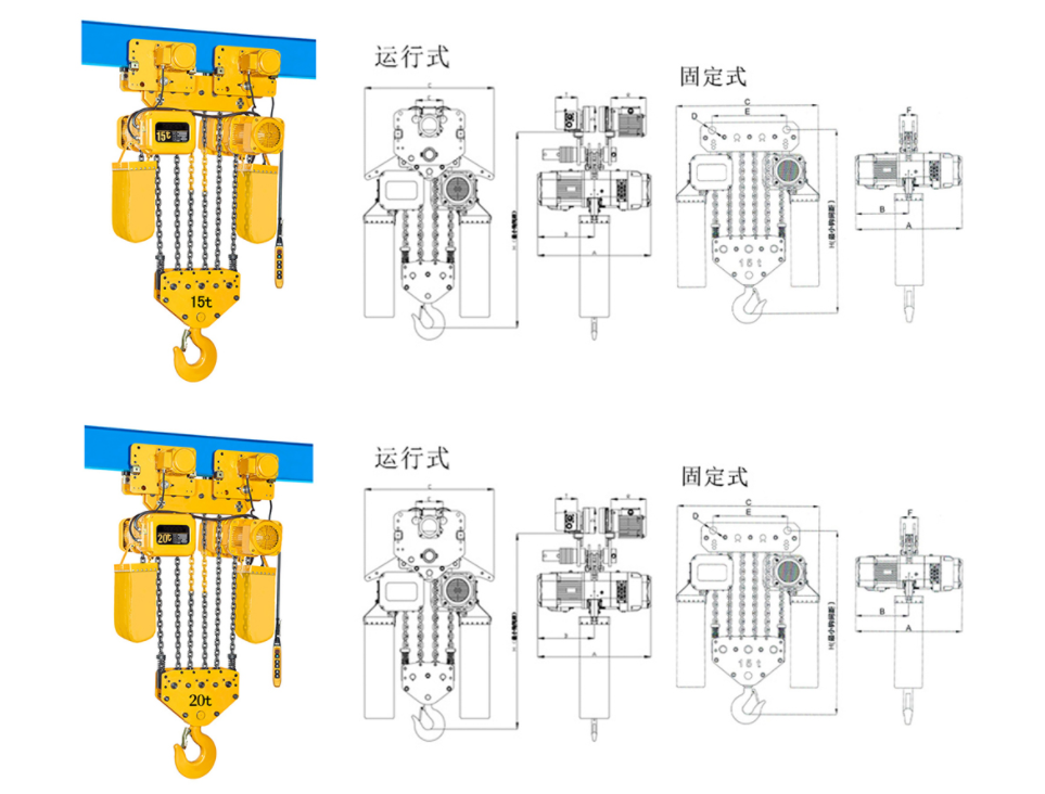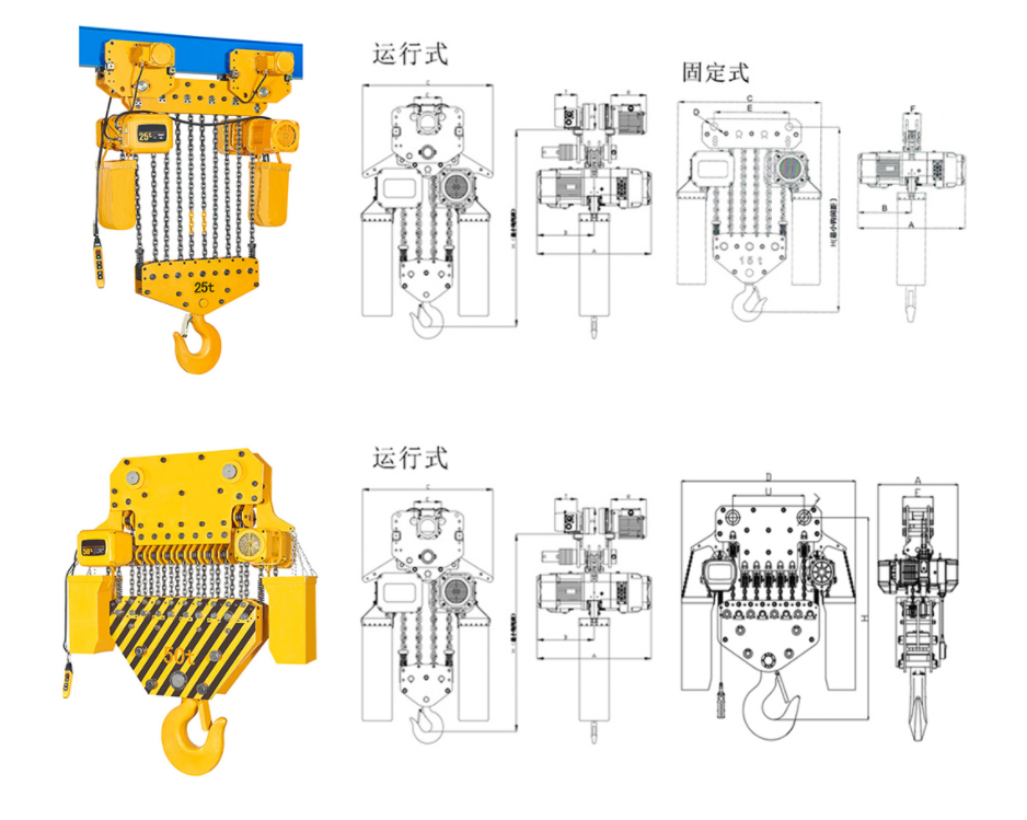 | 運行式環(huán)鏈電動葫蘆(30T-50T)尺寸參數(shù): | ||||||